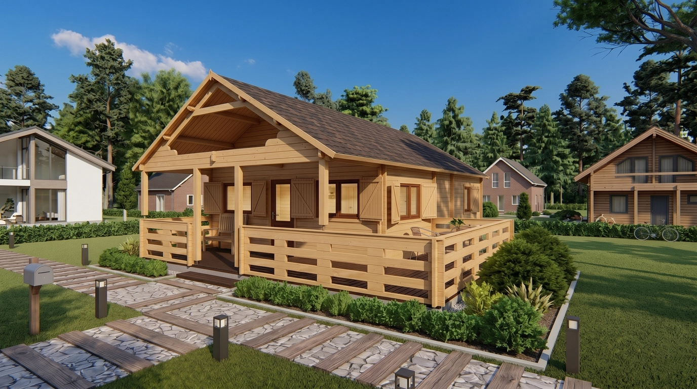 The external wall surface of 74 m² guarantees a strong, insulated enclosure, while the 19 mm floorboard thickness provides a sturdy foundation for daily use, furnishings, and equipment. Although this model has no terrace, the expanded internal footprint compensates with ample indoor space.