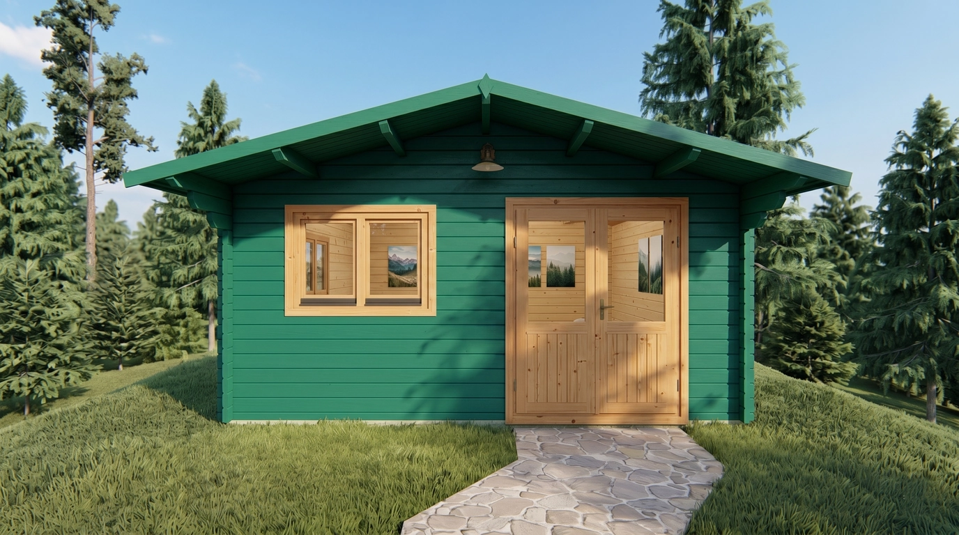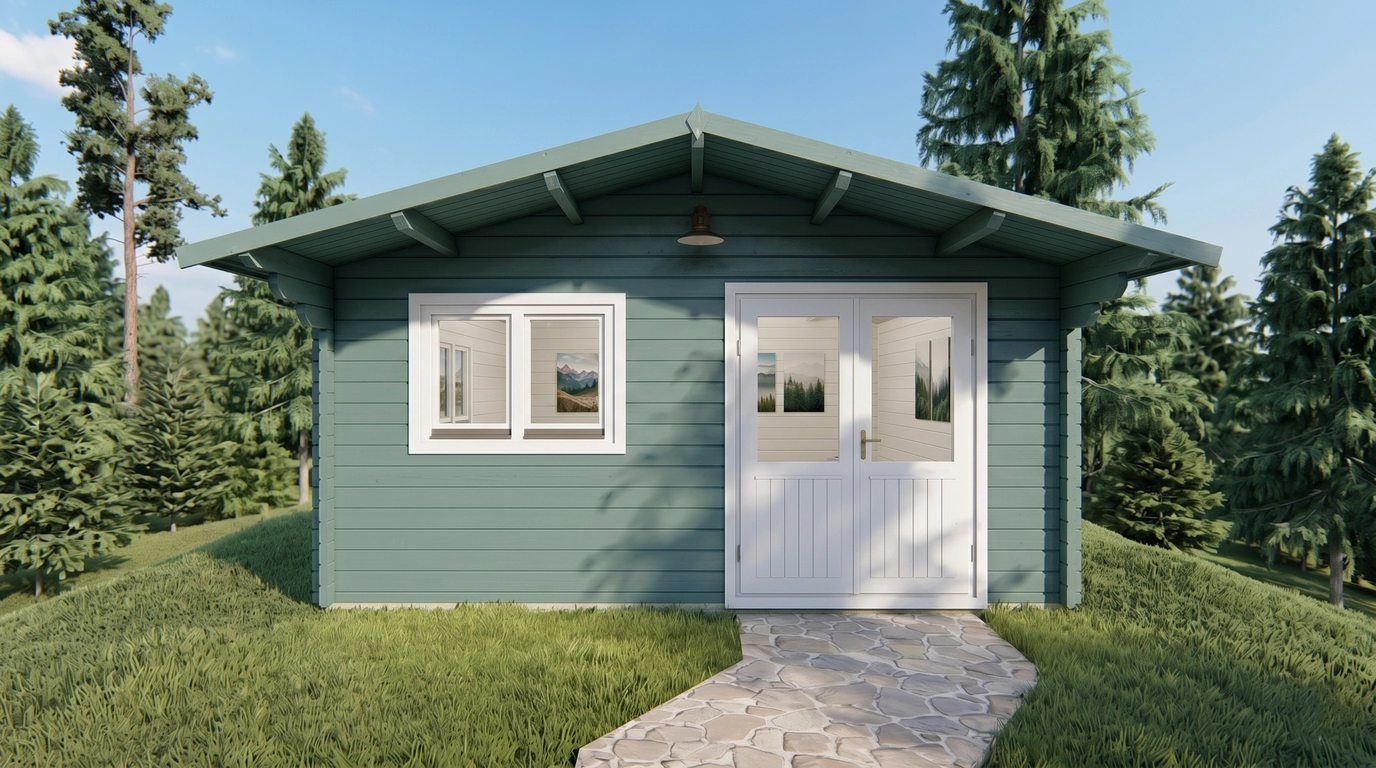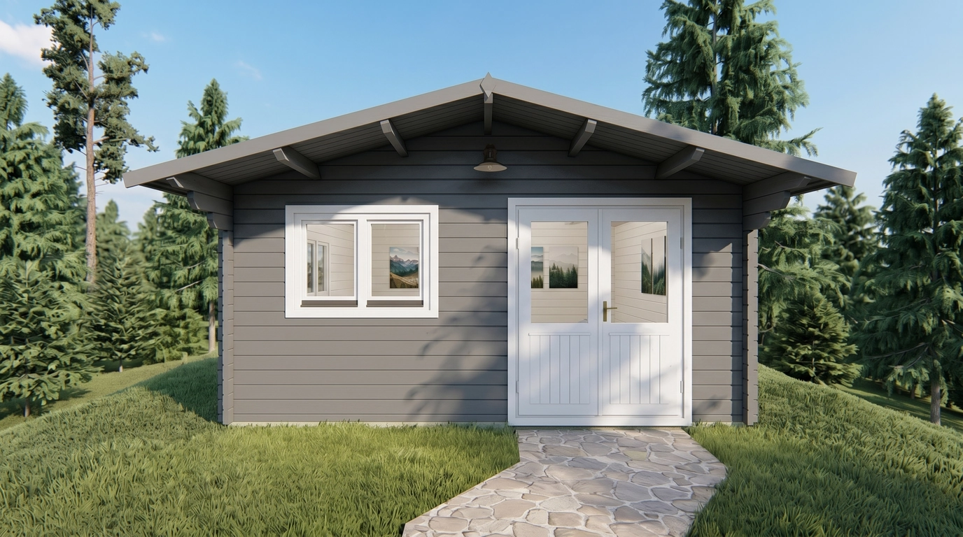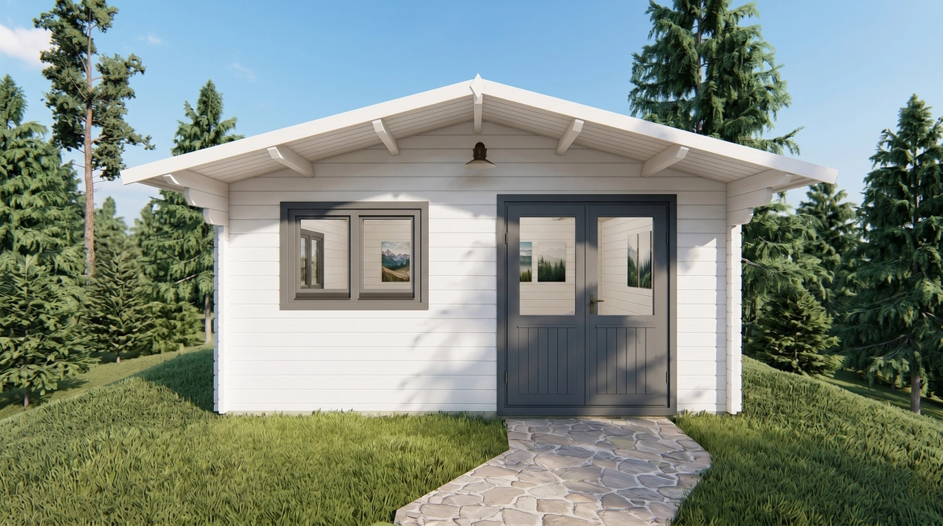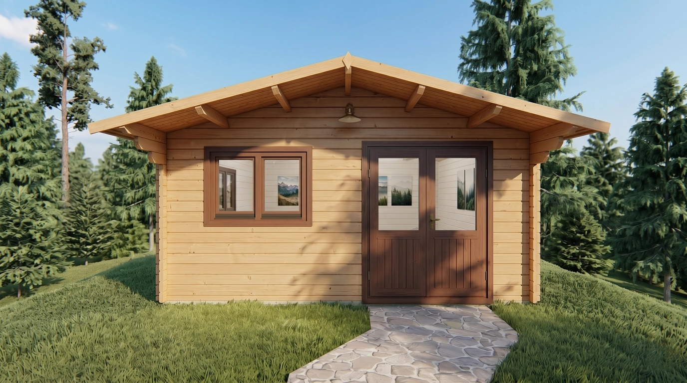 The exterior wall surface measures 40.2 m² for the Premium model and 37.7 m² for the Economy option. With 19 mm roof and floorboards, the building offers strong structural support and a smooth, durable surface.