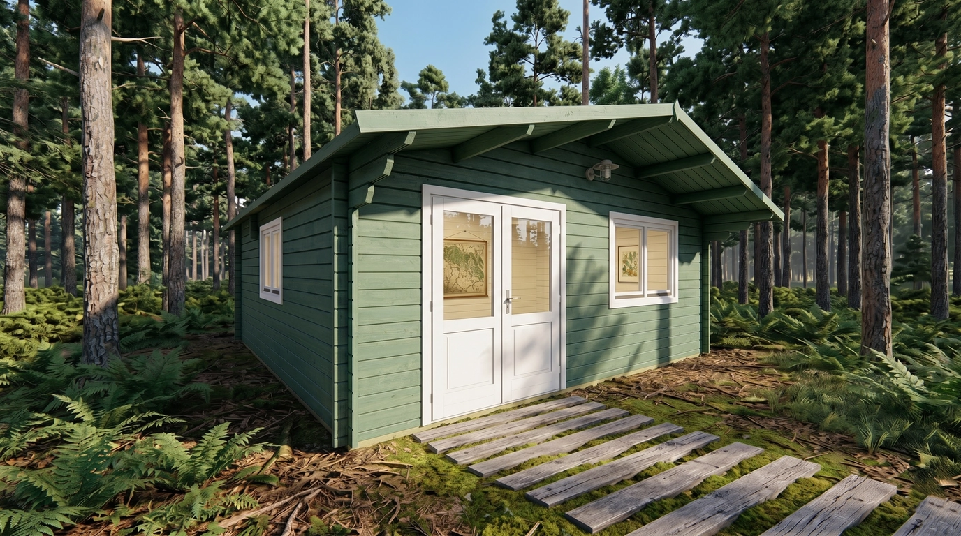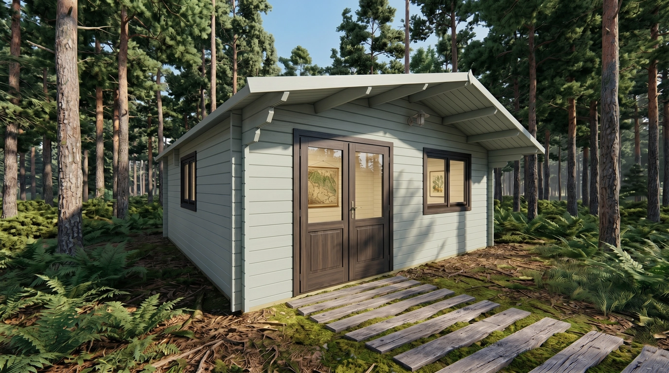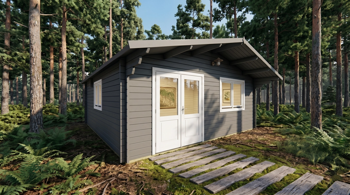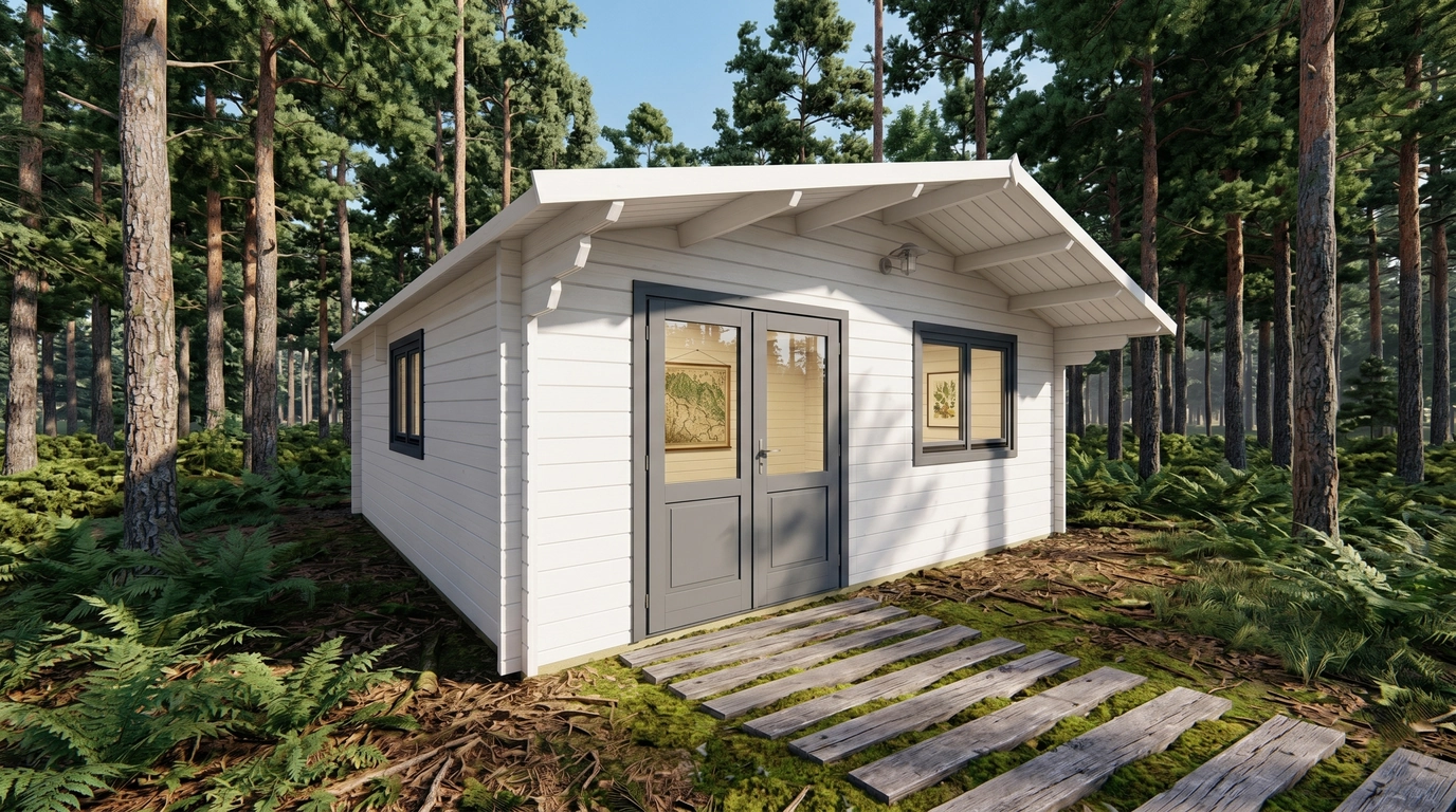 The external wall surface measures 49.7 m² in the Premium model and 46.7 m² in the Economy version. With 19 mm roof and floorboards, the structure achieves excellent stability and durability. The single double door and two double-glazed windows provide effective insulation and a bright environment, while the single-room layout offers uninterrupted, versatile space.