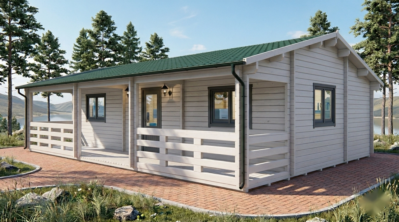 The Maja 7.4×10 m summer house is designed with attention to detail, ensuring both practicality and comfort. Its base footprint of 7.2 × 9.8 m allows for a spacious interior arrangement across 49.8 m² of internal area. Combined with the 16.5 m² terrace, the structure offers ample space for indoor and outdoor living.