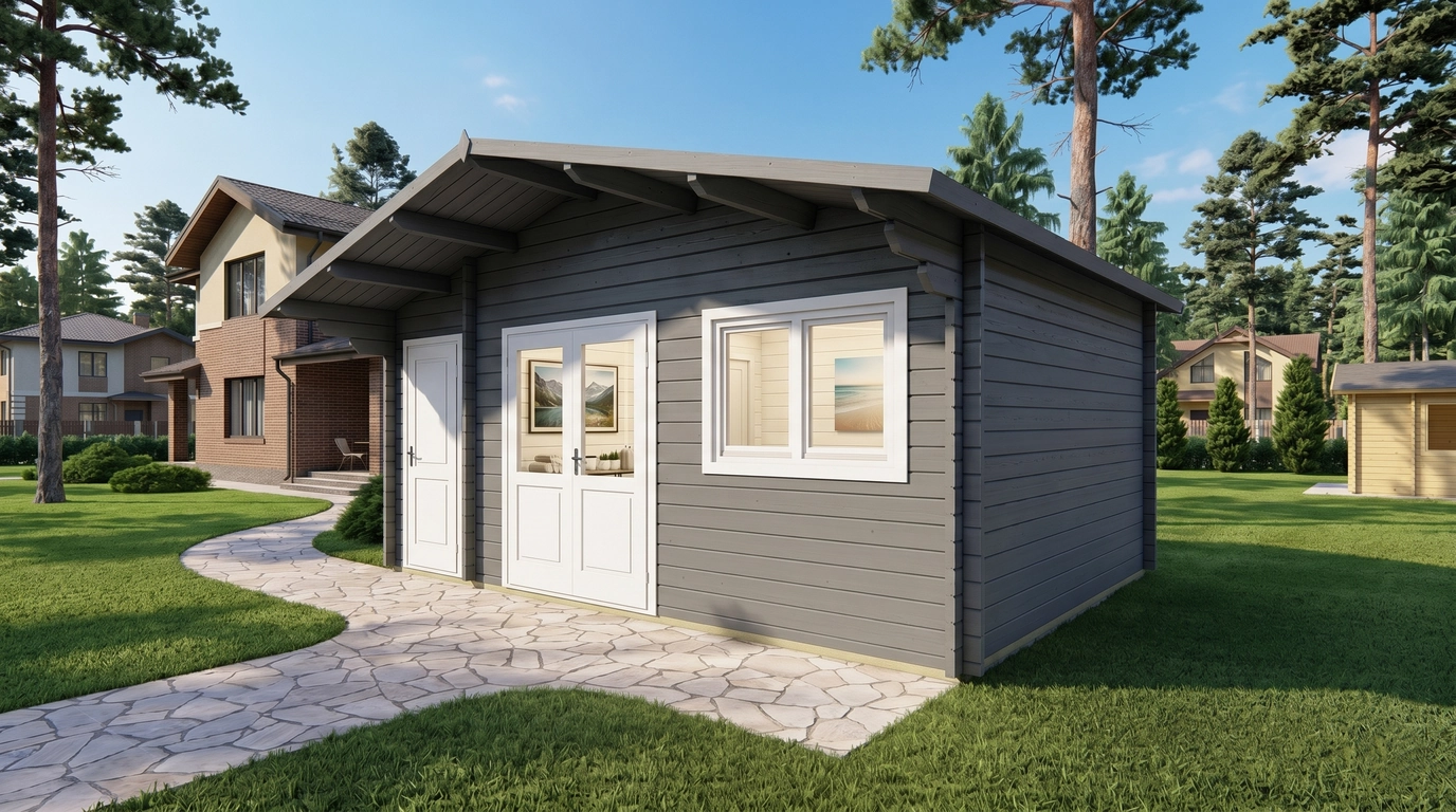 The Roberto 5.6×4 m garden house is highly versatile, making it suitable for a variety of outdoor applications. Its 3-room layout allows for flexible use, including a private retreat, a home office, or a hobby space.