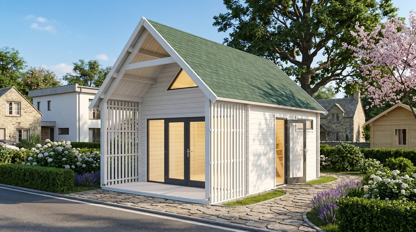 This garden house combines practical construction with modern aesthetics, providing a safe, comfortable, and stylish outdoor space.
