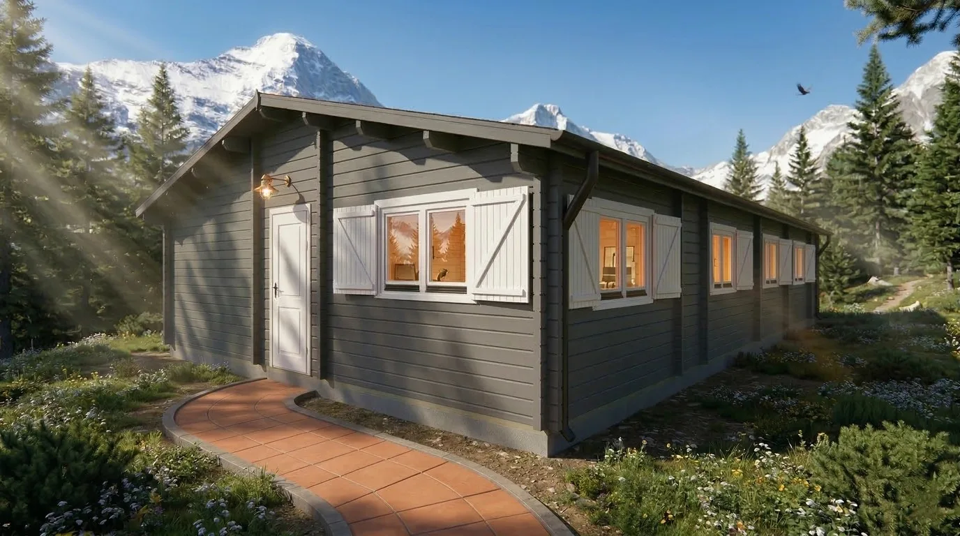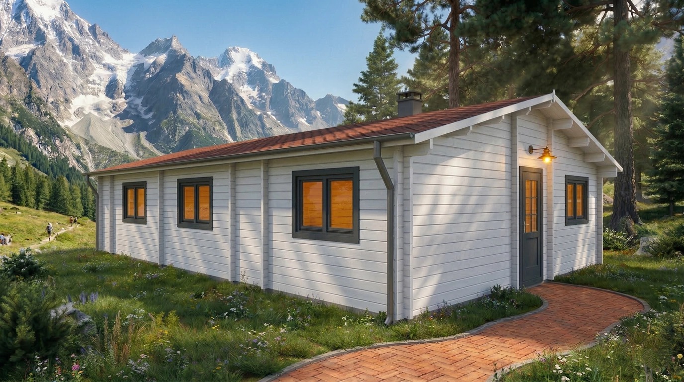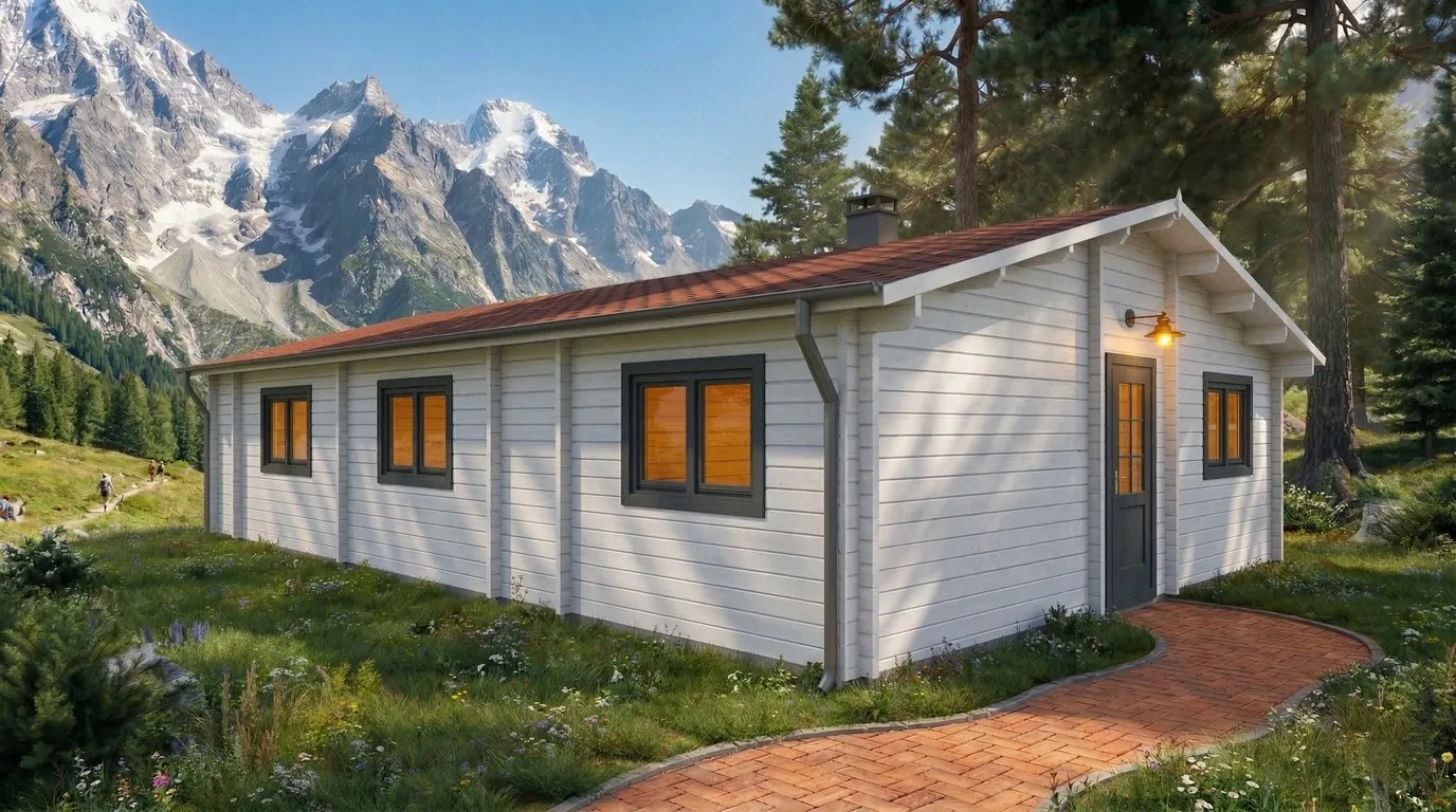 The Sevilla 7.8×13.74 m country house is highly versatile, suitable for a range of applications. Its seven-room layout allows you to designate spaces for bedrooms, living areas, kitchens, home offices, or hobby rooms.