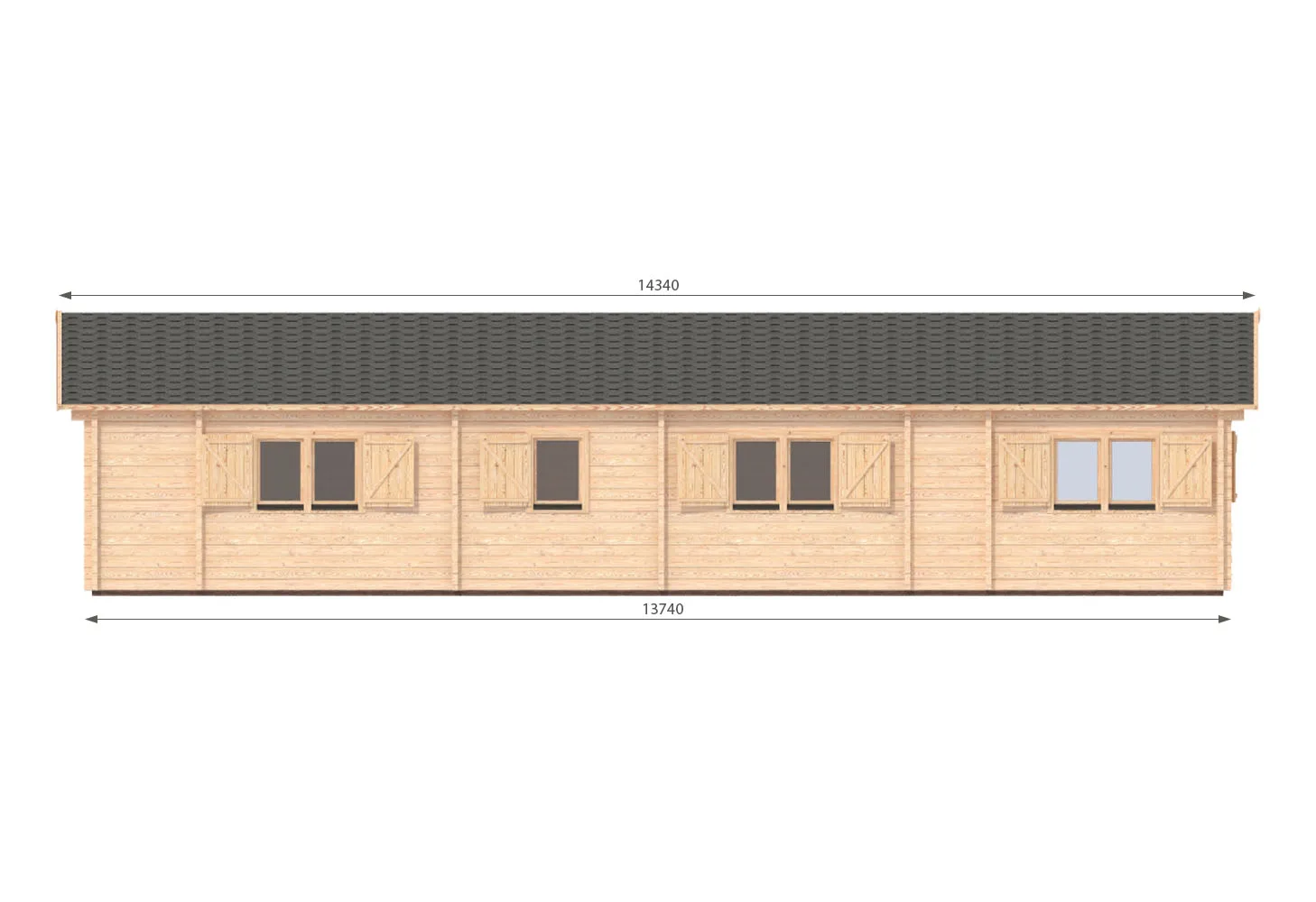 The Sevilla 7.8×13.74 m is a premium wooden country house that combines spacious living, durability, and timeless design. Boasting an internal area of 97.8 m² and a seven-room layout, this country house is ideal for families, vacation homes, or countryside retreats. Crafted from high-quality timber, Sevilla blends robust construction with aesthetic appeal, offering a warm and inviting environment. Its combination of wooden doors, double and single windows, and protective shutters ensures security, natural light, and energy efficiency, making it suitable for year-round living.
