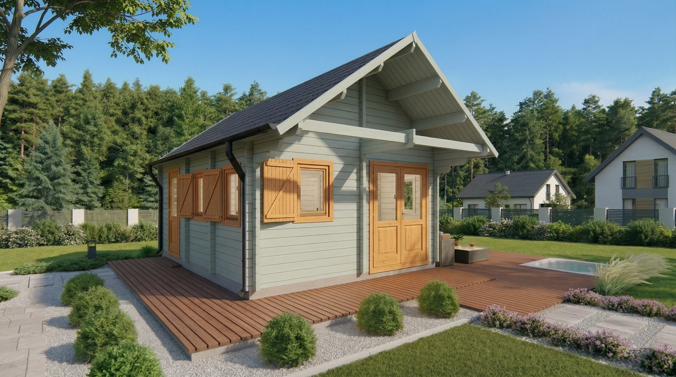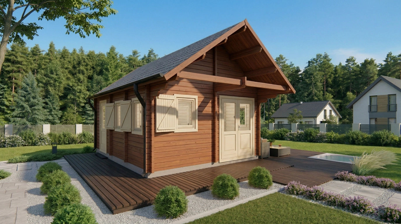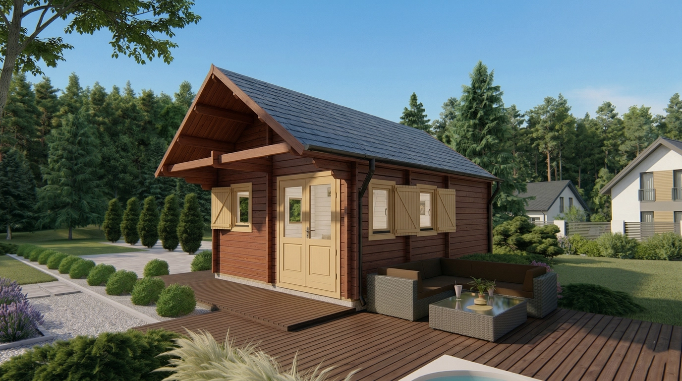 The Torino garden house perfectly blends functionality, comfort, and timeless wooden aesthetics, enhancing any outdoor area.