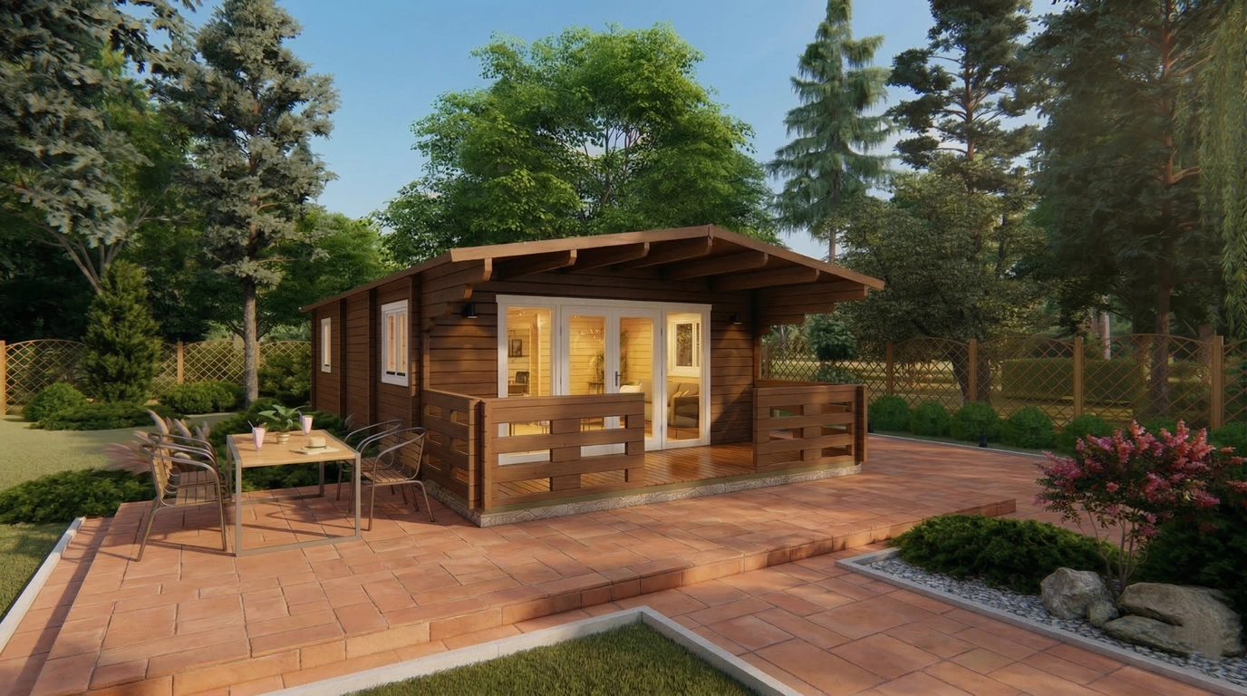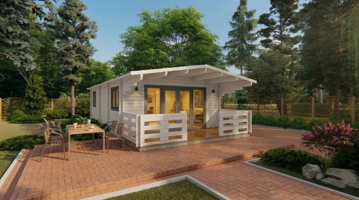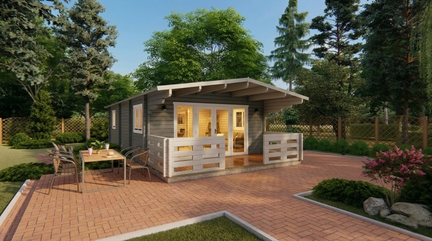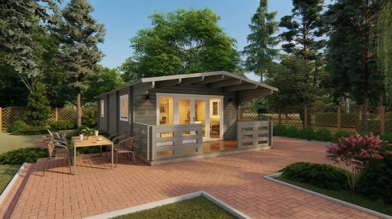 The TYP-2 5.2×10.2 m Summer House is a multi-functional outdoor space. It can serve as a private garden retreat, hobby or craft room, home office, or guest accommodation. Its generous interior area allows for comfortable furniture arrangements, making it suitable for entertaining friends and family or enjoying quiet relaxation amidst nature.