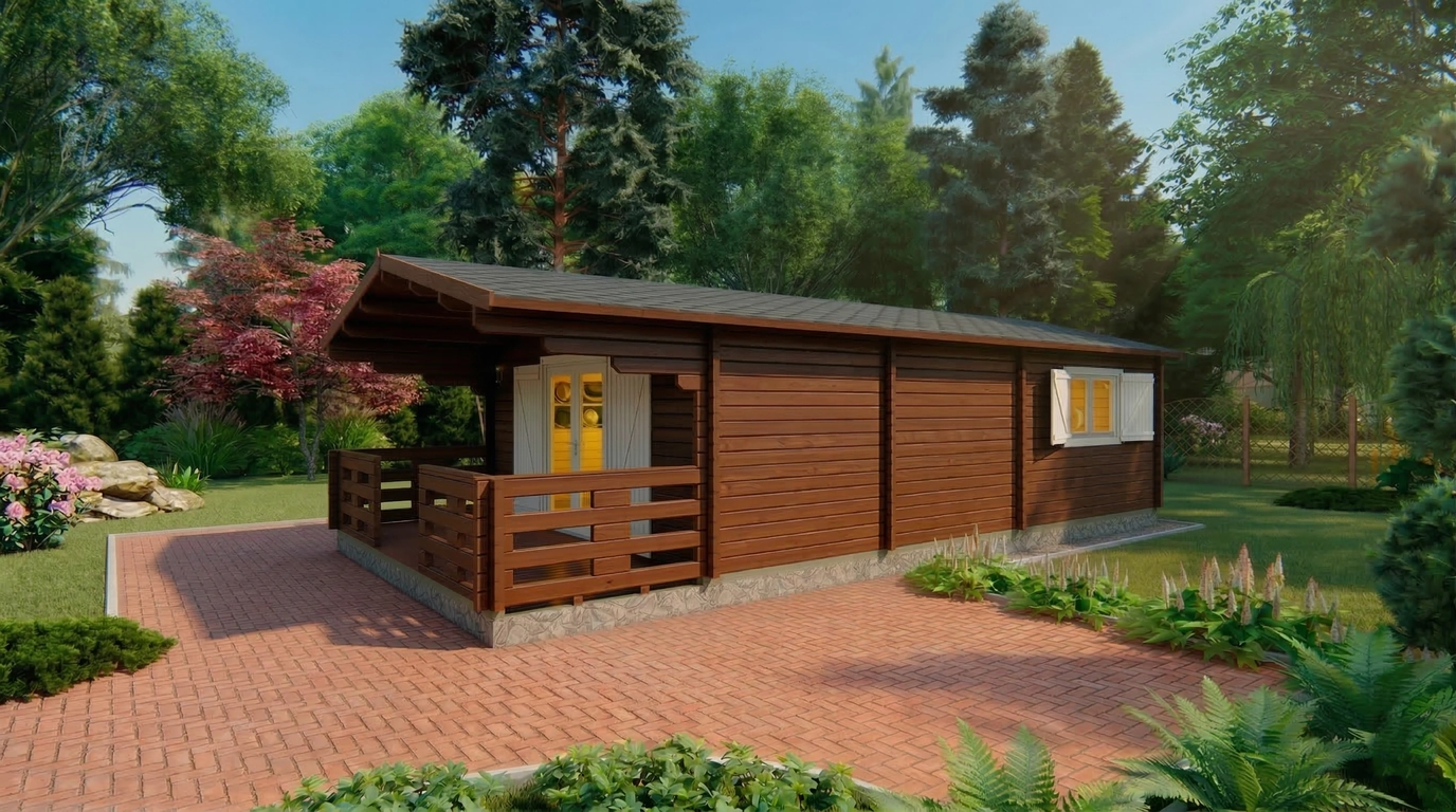 The summer house features a solid floor with 28 mm thick boards, providing stability and insulation, while the external wall surface of 57 m² is crafted for both strength and aesthetic appeal. Its timeless wooden design seamlessly complements any outdoor environment, whether modern or traditional.