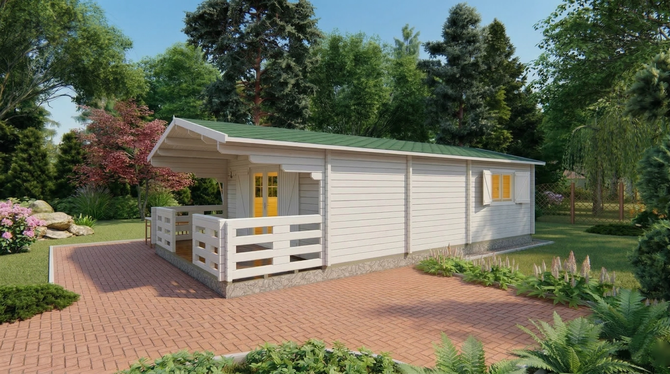 Constructed from high-quality timber, the TYP-2 summer house boasts a robust frame designed for longevity. The roof boards are 19 mm thick, offering solid protection against rain and snow, while the roof area of 57.3 m² ensures excellent coverage and shelter. With a ridge height of 2.7 m and side wall height of 2.3 m, the interior feels spacious and airy. The roof overhang of 0.2 m helps protect the walls from moisture and adds a touch of architectural charm.
